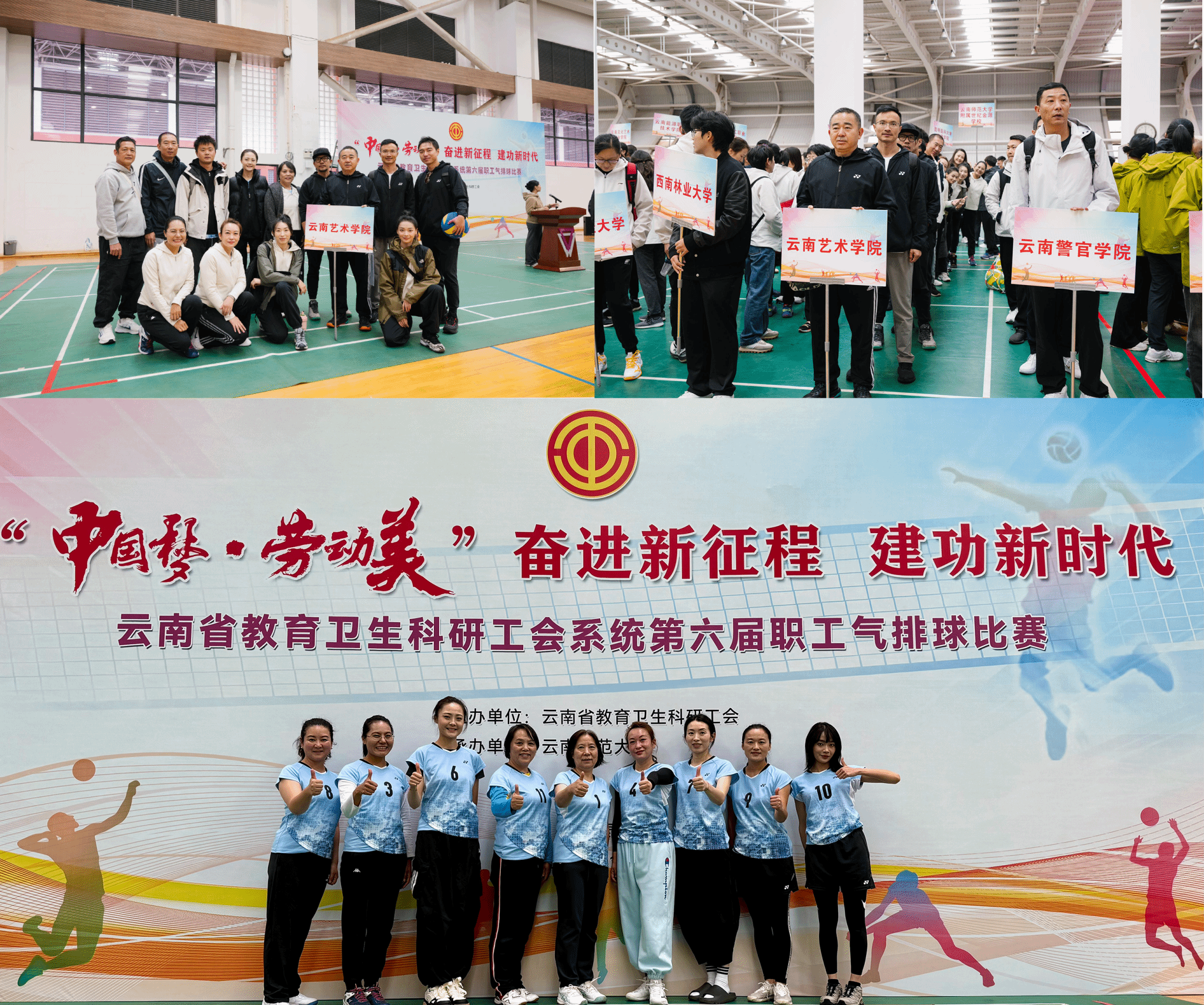 10月26日,“中国梦 劳动美”奋进新时代 建功新征程——云南省教育卫生科研工会系统第六届职工气排球比赛在云南师范大学圆满落幕。经过五天的激烈角逐,我校教职工代表队凭借顽强拼搏的斗志,一路过关斩将,从众多参赛队伍中脱颖而出,最终荣获教育系统乙组男子第四名、女子第三名的优异成绩。